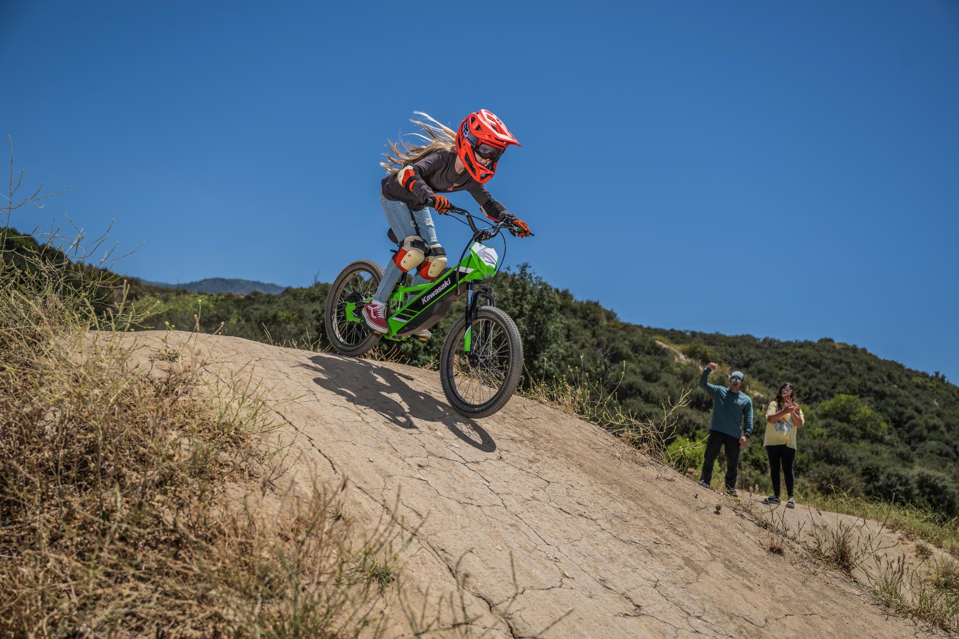 Spänning och körglädje väntar med denna lätta och aggressiva eldrivna hoj – perfekt för lek och äventyr i terrängen. Med tre valbara hastighetslägen kan föraren enkelt anpassa farten efter sin erfarenhetsnivå och rådande förhållanden – maximera det roliga när det är dags att leka och bygg upp självförtroendet för varje tur. Tack vare den klassiska Lime Green-lacken och den motocrossinspirerade designen kommer varje förare känna sig som en del av Kawasaki-familjen.