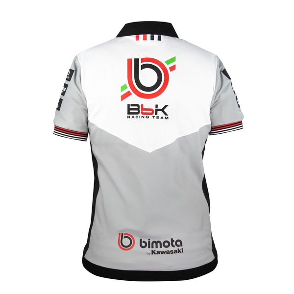 Upplev alltid komfort och kvalitet med den officiella Bimota by Kawasaki-pikén. Med en innovativ design framhäver plagget grått och vitt som huvudfärger, med svarta och röda detaljer på axlar och ärmar.
