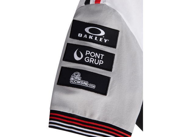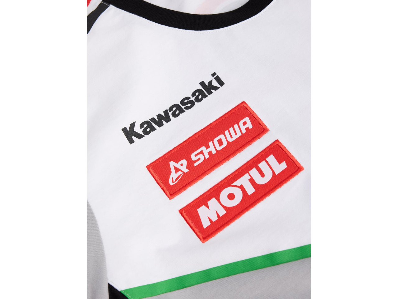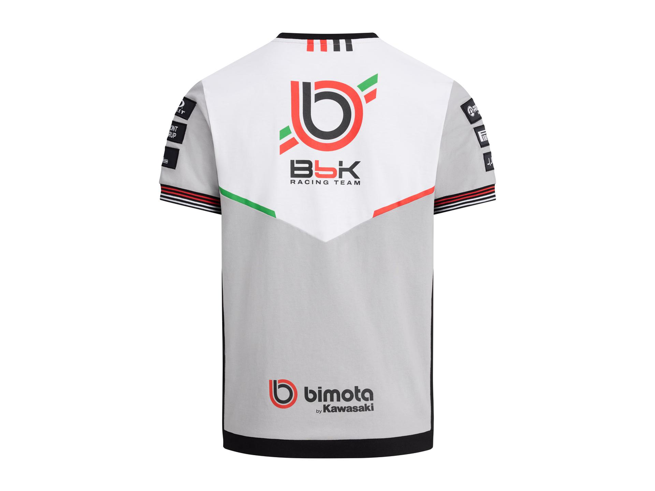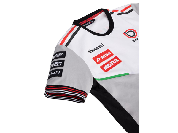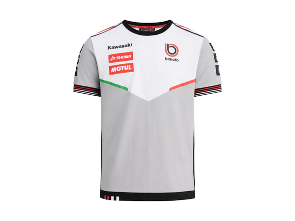 Kortärmad t-shirt med rund halsringning, med ribbade ärmslut i rött och vitt samt nederkant med röda och vita Bimota-markeringar.