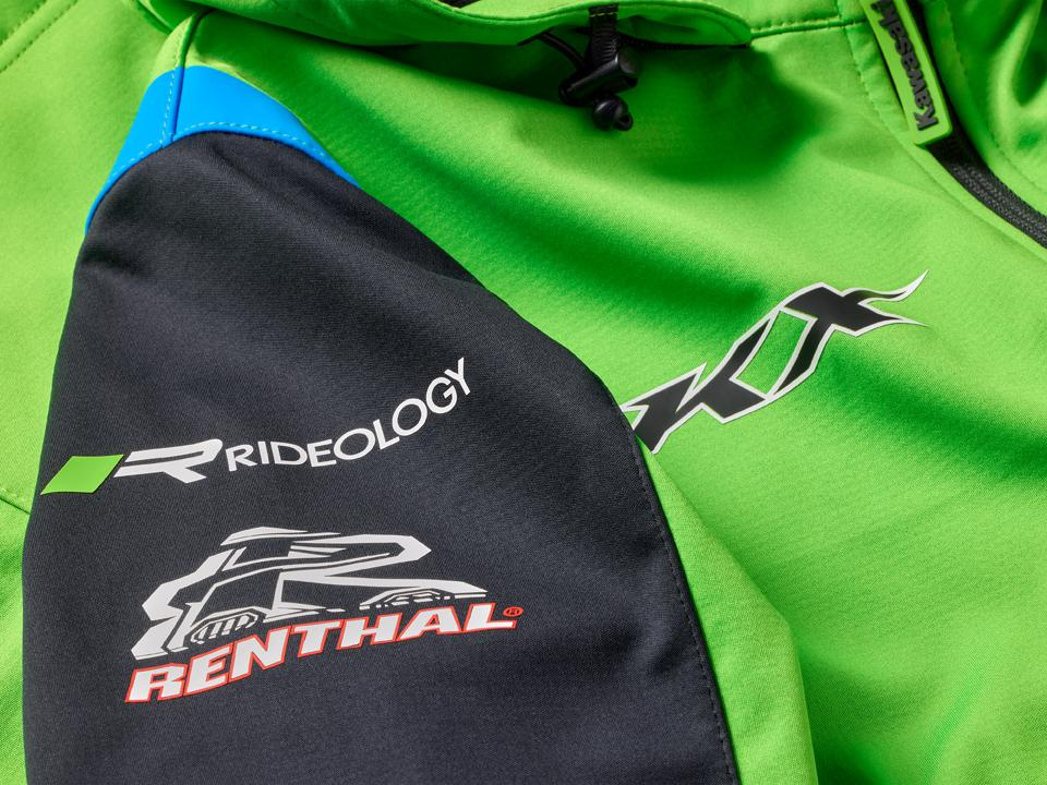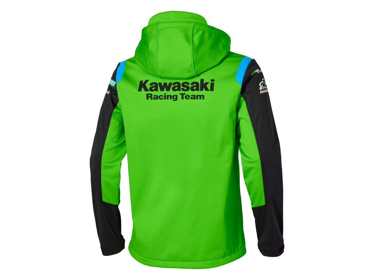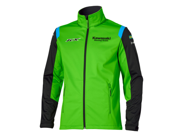 Softshelljacka i Kawasakis MXGP-teamfärger med avtagbar huva, dragkedjeförsedda ytterfickor och justerbara ärmslut. Utökad storleksserie från XS för att passa en unisex-passform.