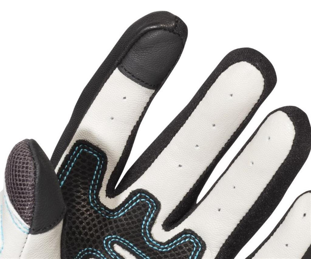 Denna handske i mesh och läder är CE-certifierad till Level 1 KP. Skyddet består av TPU på knogarna, TPR på fingrarna samt memory foam på tummen och en handflata i fullnarvigt dubbelt läder. Handsken har dessutom smart touch-läder på pekfingret, förformade fingrar och en kardborreknäppning – perfekt för sommarmotorcykling.