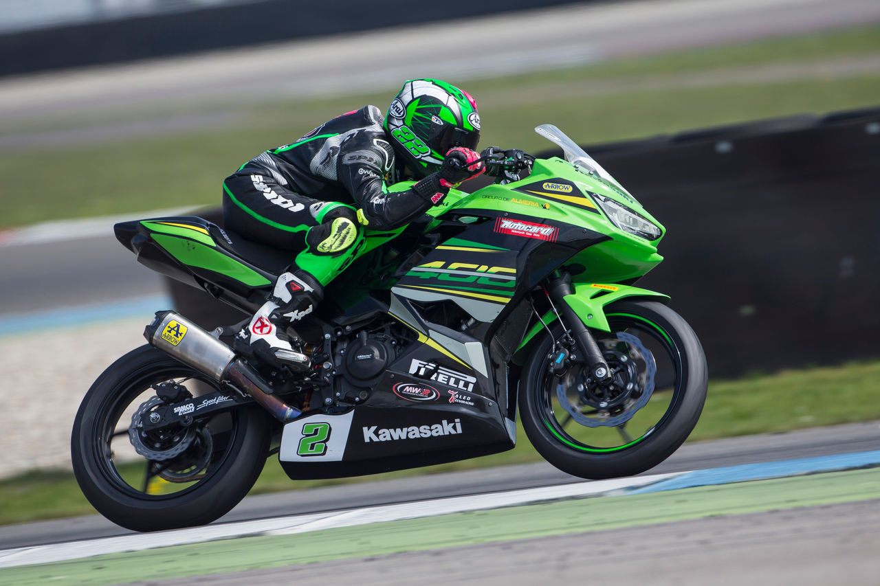Redan under det allra första året av WorldSSP300, när klassen var så kraftigt övertecknad att man behövde köra utslagningsheat innan huvudracen, fanns Kawasaki med på startlinjen med den ursprungliga Ninja 300. Världsmästartiteln kom inte riktigt det första året, men tre segrar togs – två av Scott Deroue (MTM HS Kawasaki) och en av en viss Ana Carrasco (ETG Racing Kawasaki). Lägg namnet på minnet.