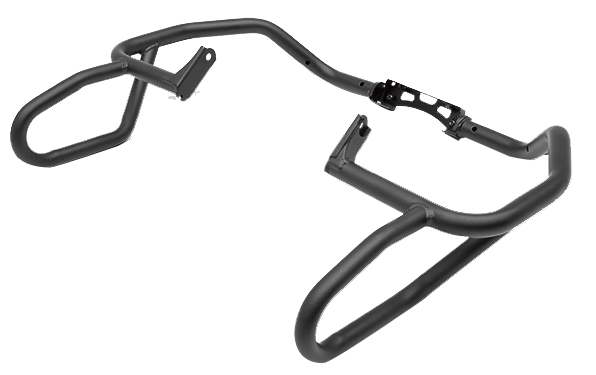 Dessa motorskydd i stål hjälper till att skydda motorn och sidokåporna vid en eventuell vältning, samtidigt som de förstärker motorcykelns robusta äventyrsstil.
