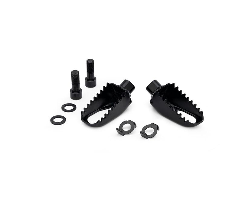 Tillbehörs fotpinnar i motocrosstil i svart stål för att ersätta "cykelfotpinnarna" på Elektrode. De upphöjda tänderna ger bättre grepp och maximal kontroll över cykeln.